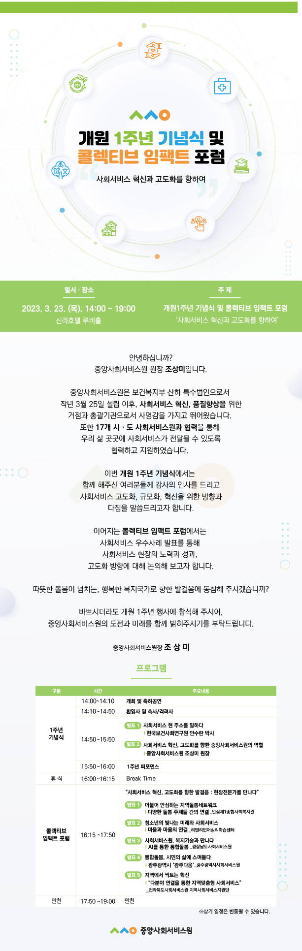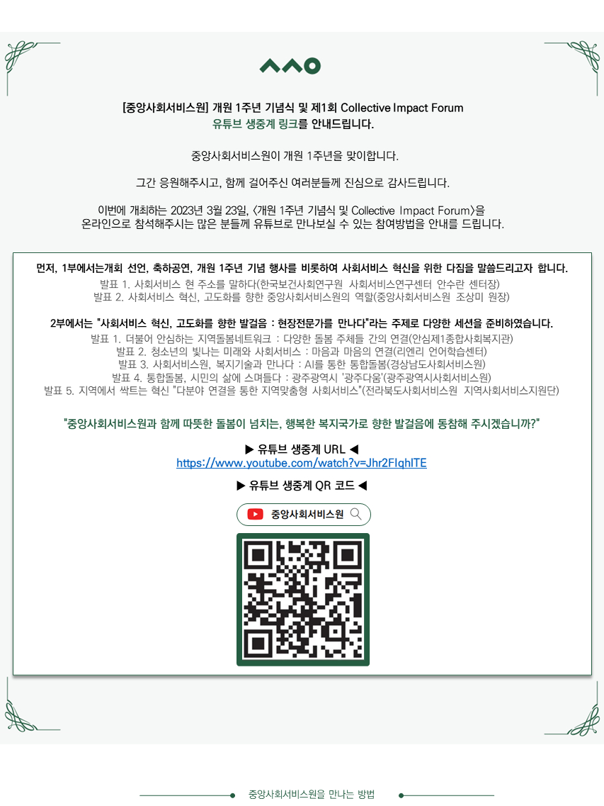 [중앙사회서비스원] 개원 1주년 기념 행사 및 콜렉티브 임팩트 유튜브 중계 안내