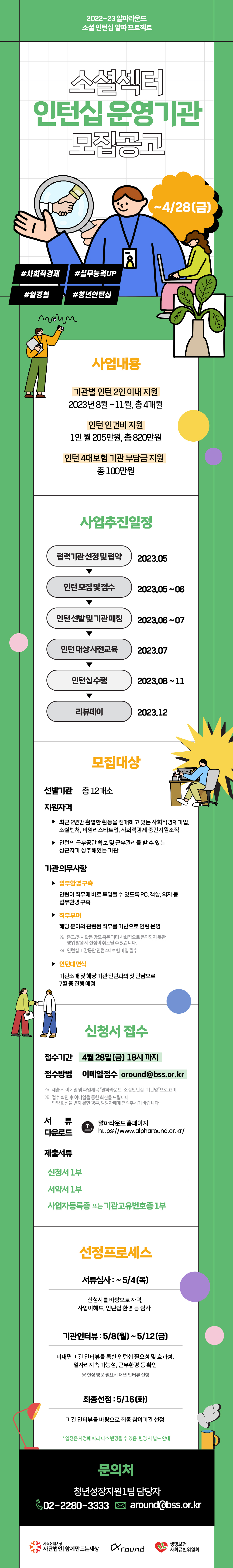 [알파라운드] 소셜인턴십알파프로젝트 - 소셜섹터 인턴십 운영기관 모집 공고 (~04/28)